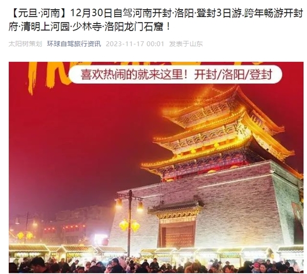 ]【元旦·河南】12月30日自驾河南开封·洛阳·登封3日游